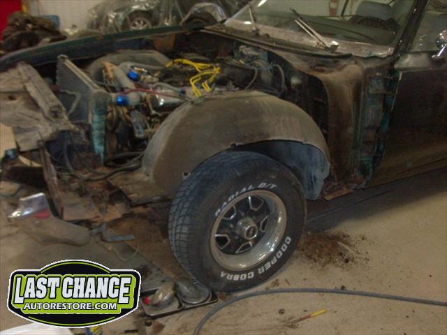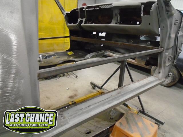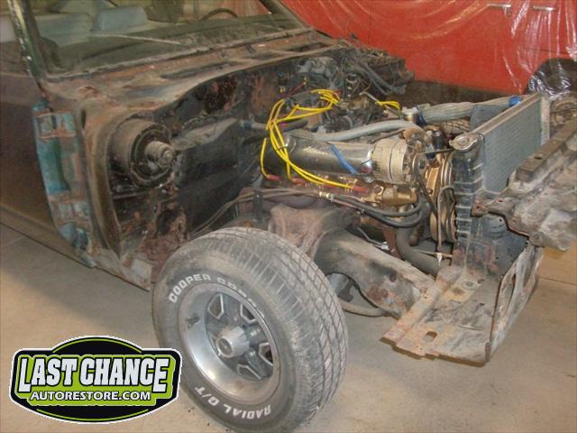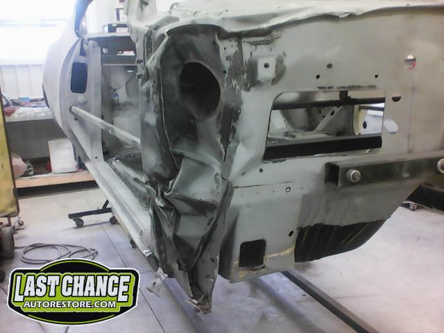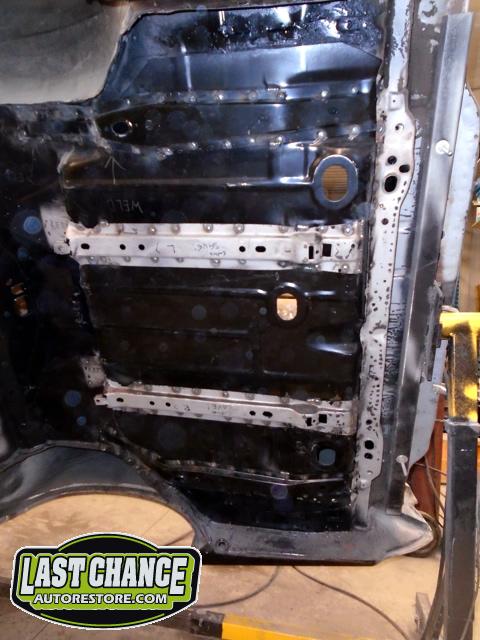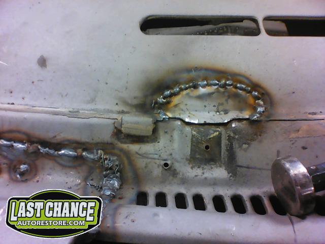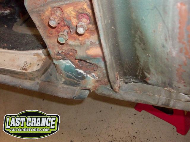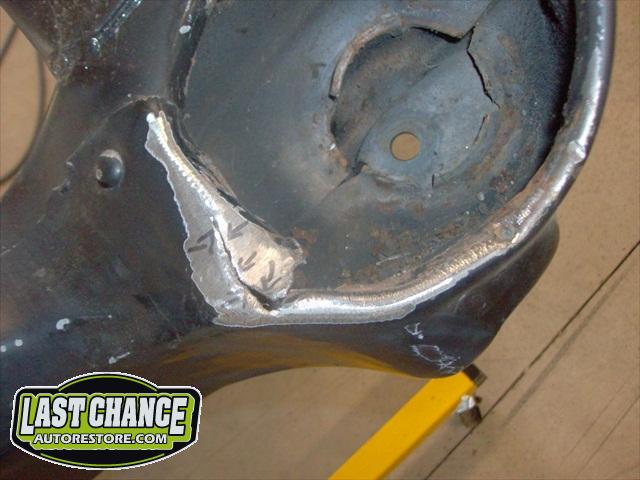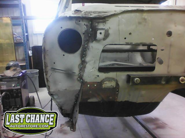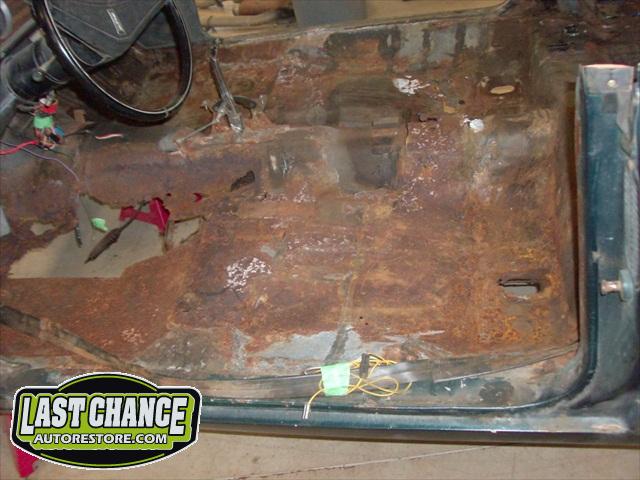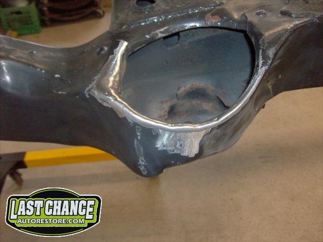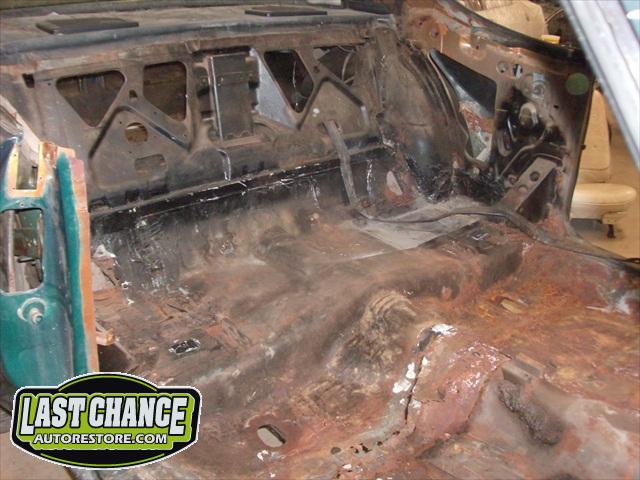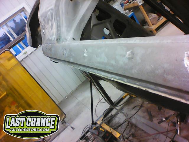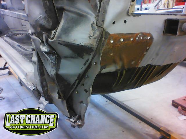 Several rusted sections in the inner and outer rocker panel areas were all cut out and replaced with new metal. The rear wheel wells were also treated to new steel where needed.
