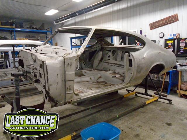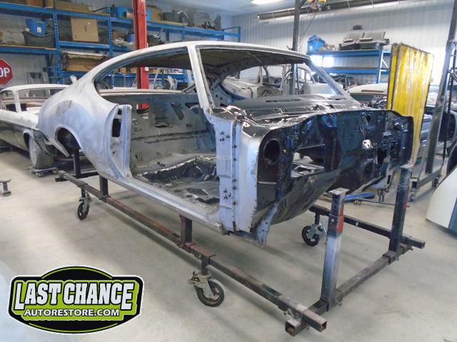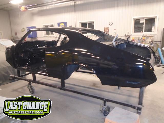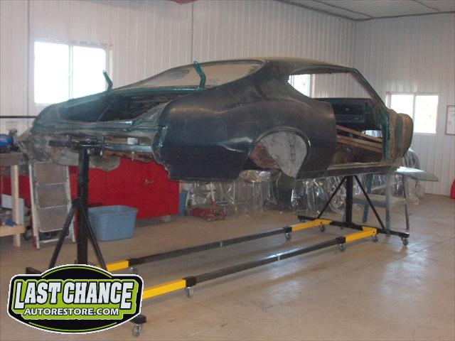 Our next step was to lift Goblin's body off of the rotisserie and mount it on a special dolly so the exterior body shell can have the body refinishing begin.
