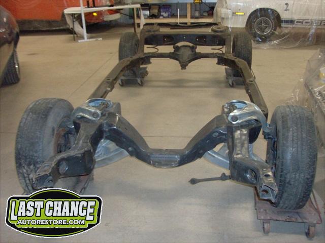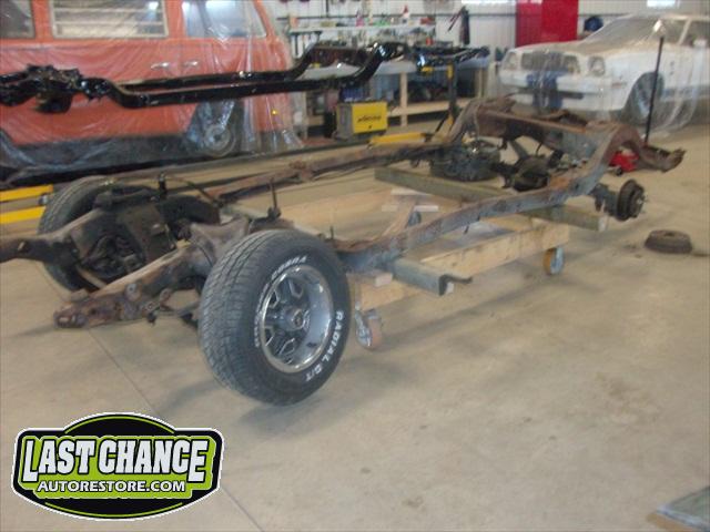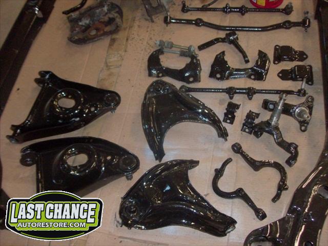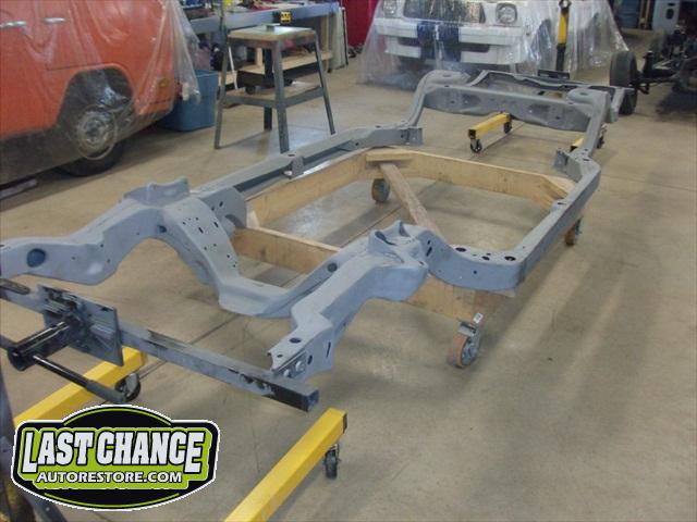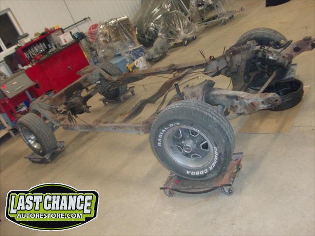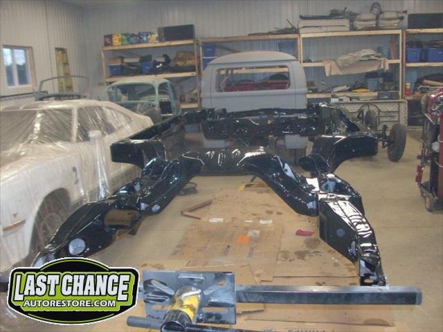 We removed the old brakes lines, fuel lines and steering box assembly, degreased and sandblasted the entire frame.