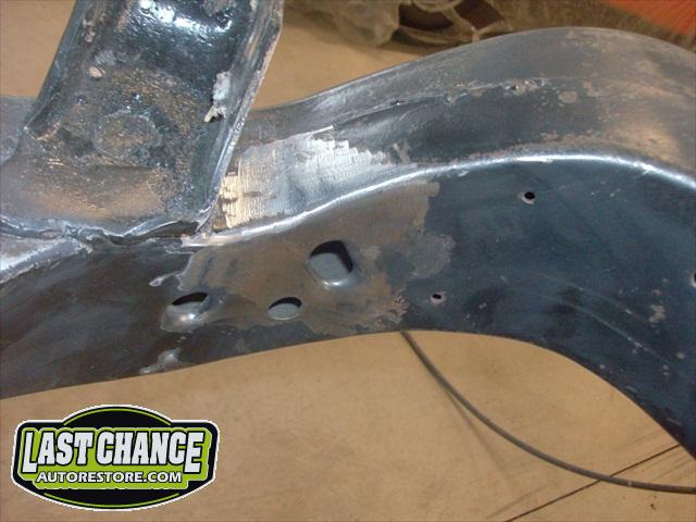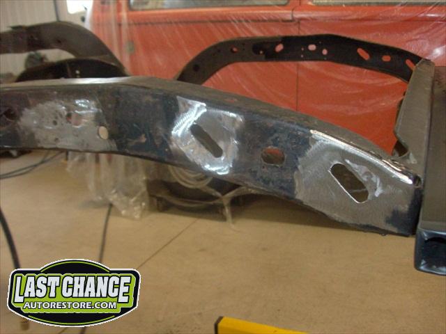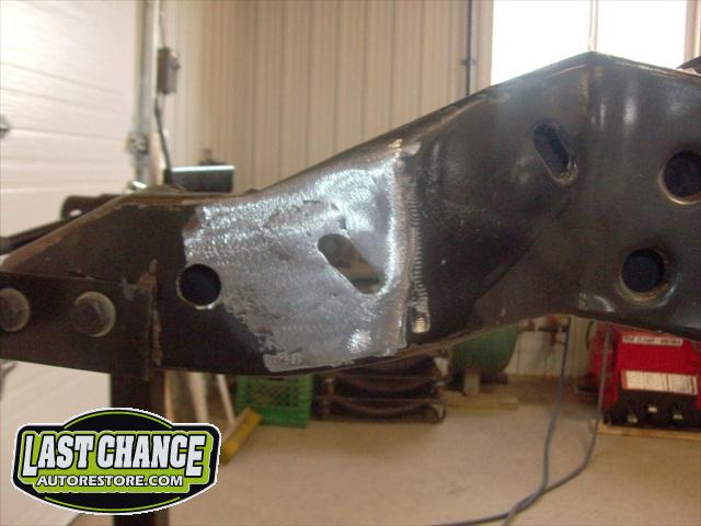 We repaired the "Southern U.S" frame. There were some areas that required welding. We repaired all of the areas along with some stress cracks. The frame was degreased and sandblasted. The "new" frame then received two coats of POR15 high gloss paint.