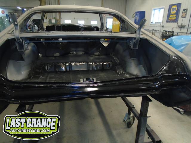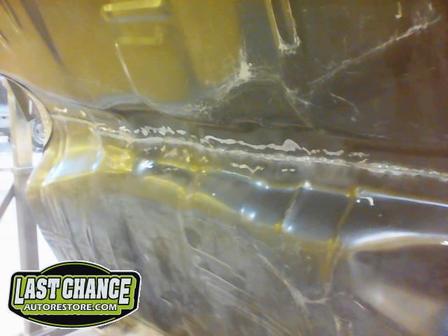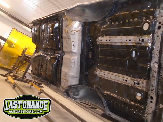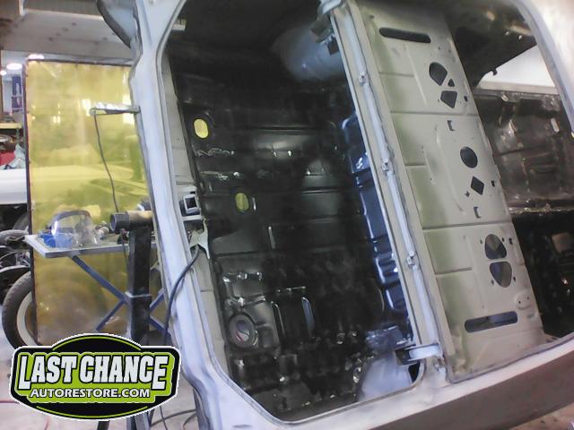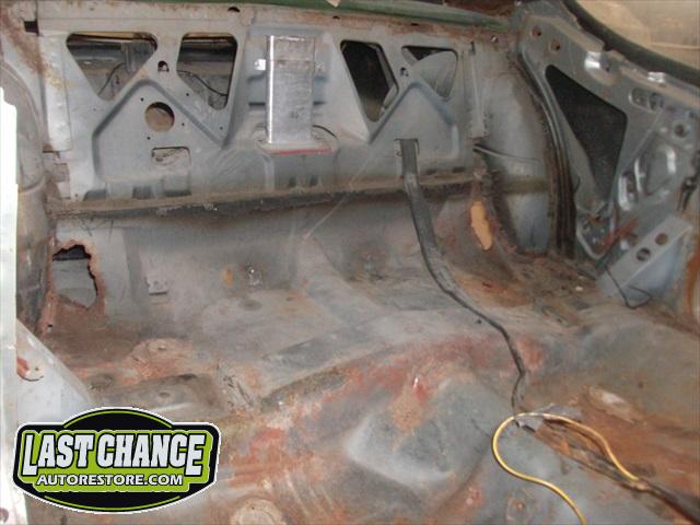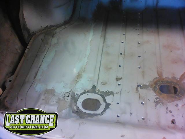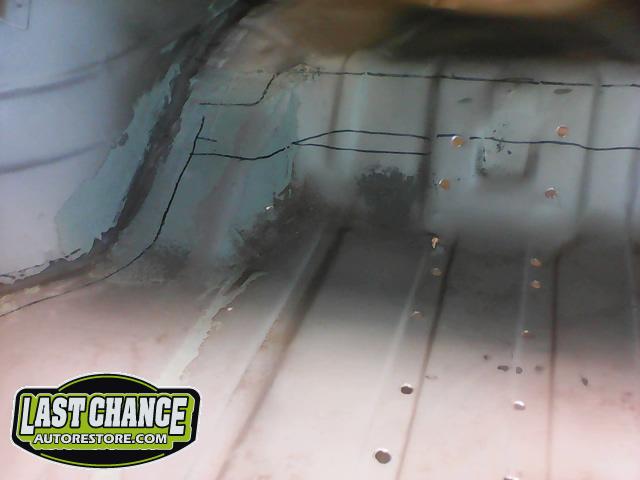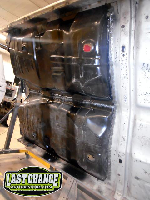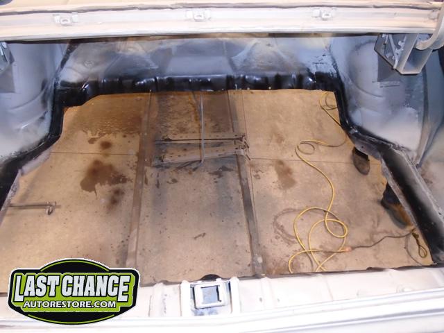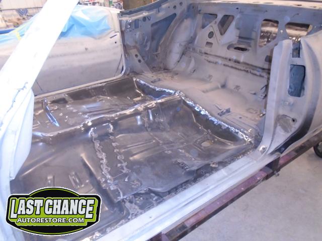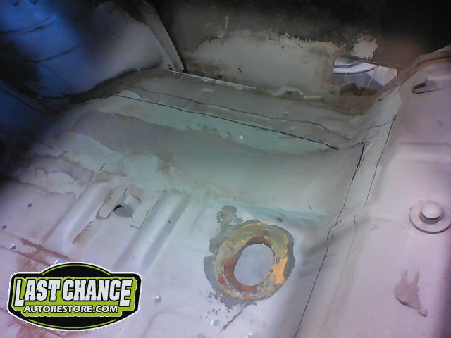 After the blasting was completed, it exposed lots of hidden poor previous repairs to the floor and trunk sections (hidden fiberglass and body filler was under thick undercoating).