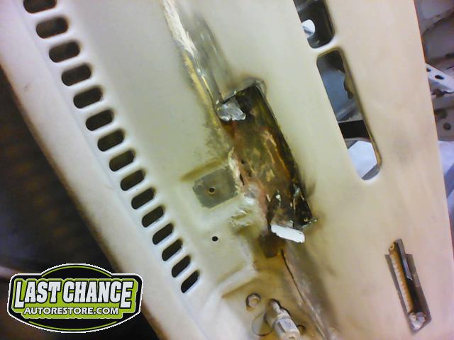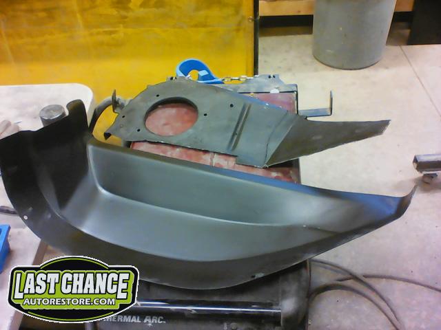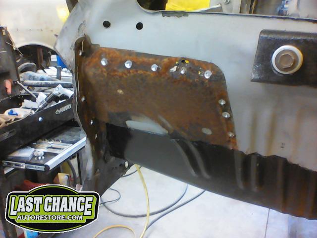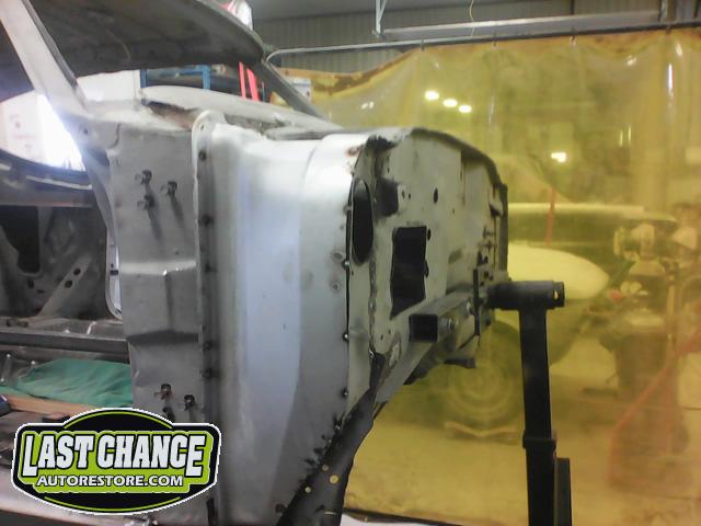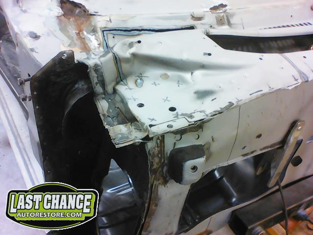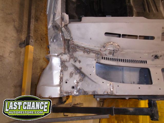 Damage to the front passenger firewall (in the heater box area) was removed and reconstructed as new.