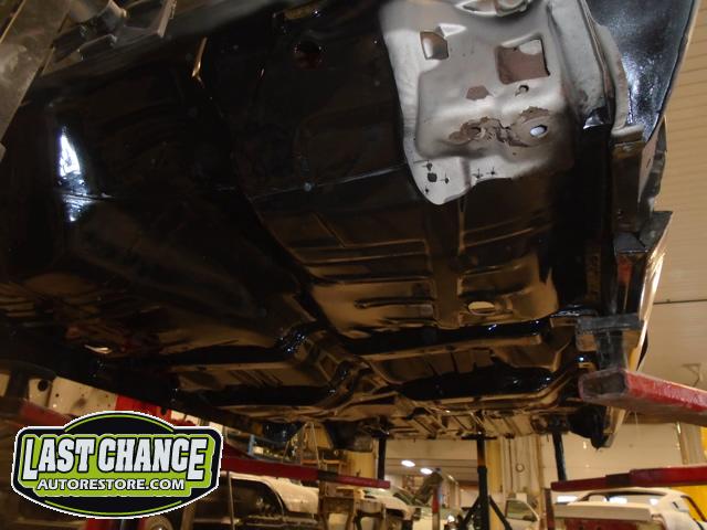 Once all of the welds were ground smooth the complete underside of the car received two coats of a special black two part epoxy paint.