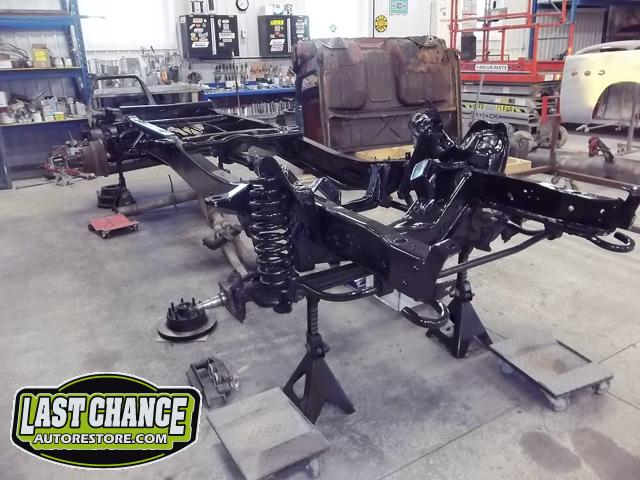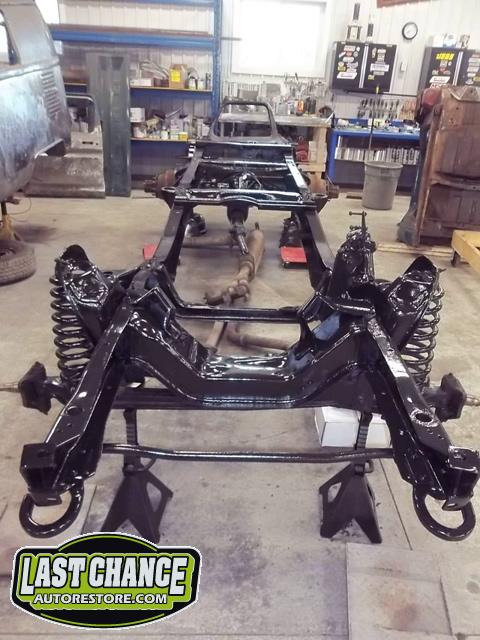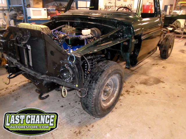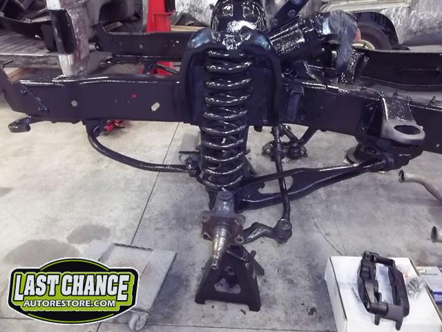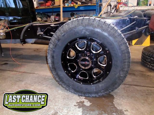 The frame was treated to three coats of a special two part gloss black epoxy paint and completely new brake components and new heavy duty shock absorbers were installed to both the front and rear of the truck.