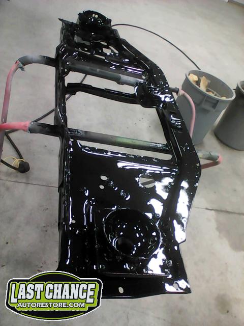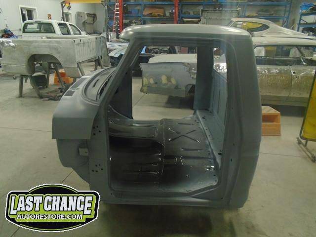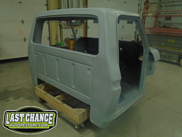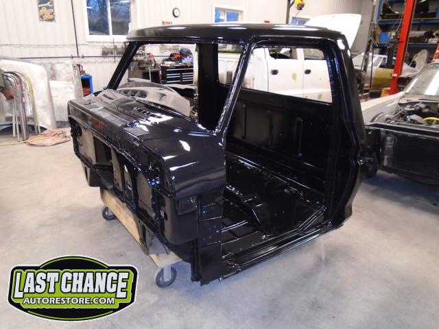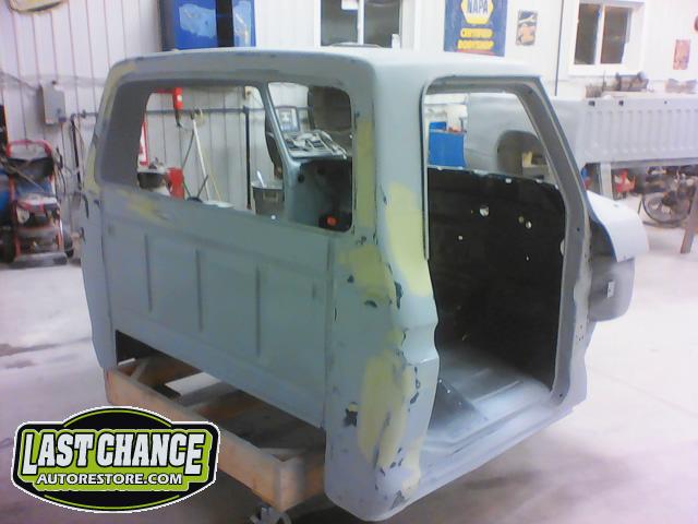 The cab bottom received 2 coats of black anti rust paint before it was set on all new rubber cab mounts on the completely rebuilt frame.