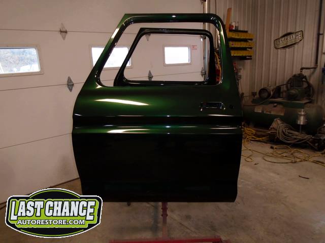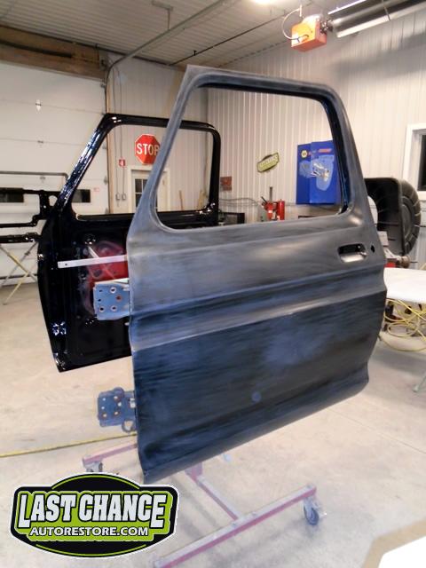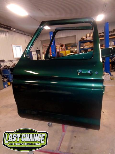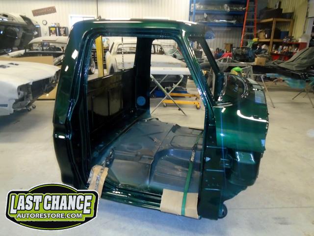 This process required numerous hours of block sanding, beginning with 80 grit sandpaper and proceeding with 120 grit, 180 grit, 240 grit, up to 320 grit (the cab received another spray of high build primer between each grit of sandpaper. The final grit of sandpaper to 400 grit, ensuring a factory smooth looking surface before the special Emerald Green Metallic paint finish was applied.