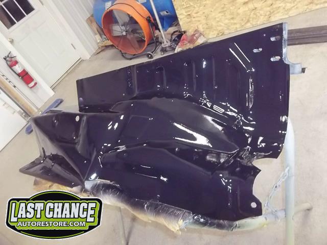 Inner fenders were installed next. They look much nicer painted body colour than the untreated plain galvanized steel they were originally from the Ford Factory in 1975!