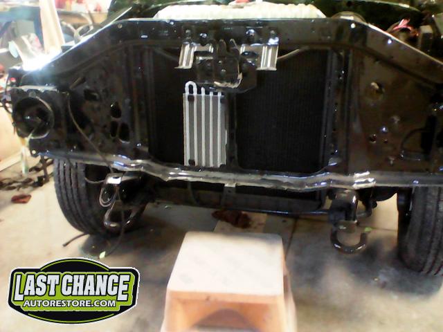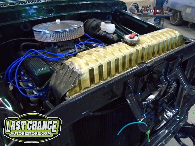 We discovered the recored radiator still had the original brass top (it was covered with grease and black paint).