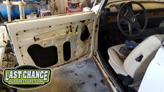 Both doors were taken apart (door panels, window regulators, glass, handles and trim). The complete interior was also removed (old nasty carpet, underlay and all trim along with the complete dash board assembly.