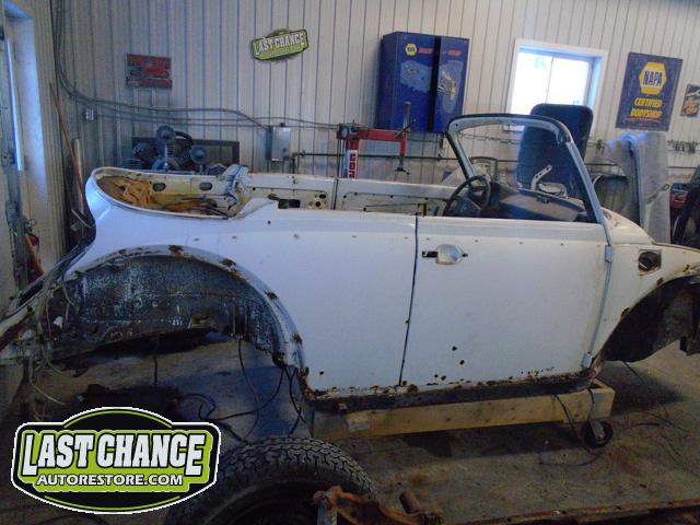 Winnie came to our spa for a total Ground Up / Pan Off restoration. There was a special "triple white" (meaning white exterior paint, white interior and a white convertible top) edition that was built in limited supply for the Canadian market place.