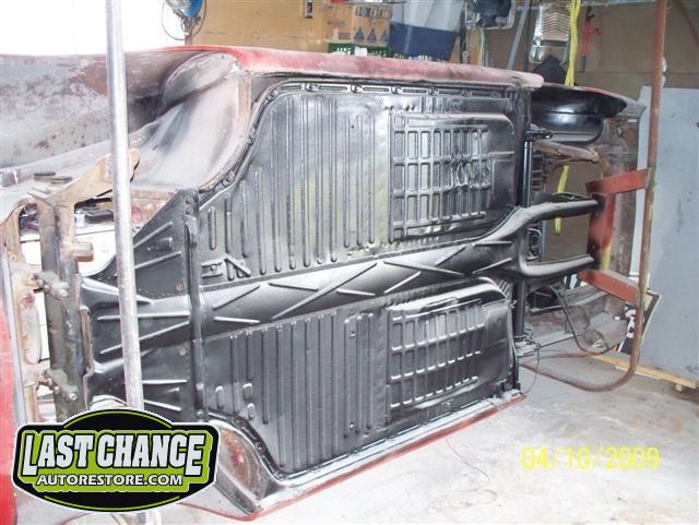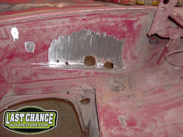 With the chassis completed, we turned our attention to the body shell. There was a large amount of fabrication required. We replace both heater channels, front firewall, and several smaller areas that required replacing.