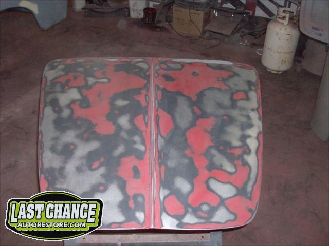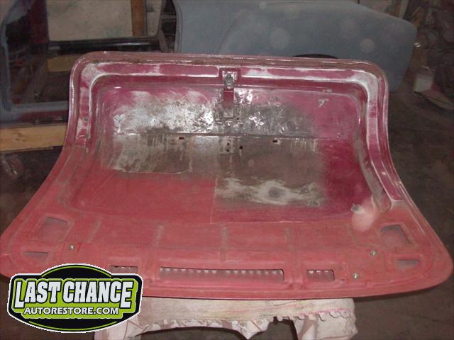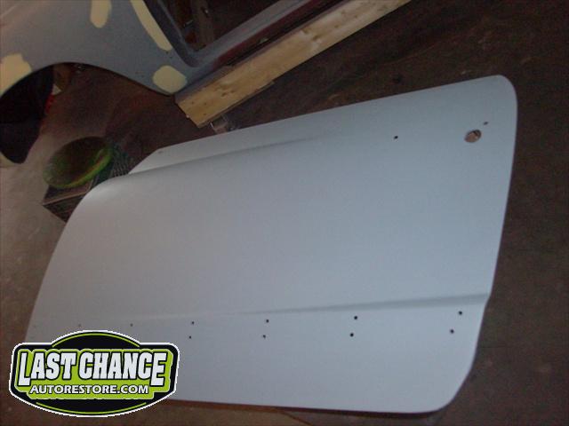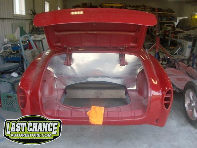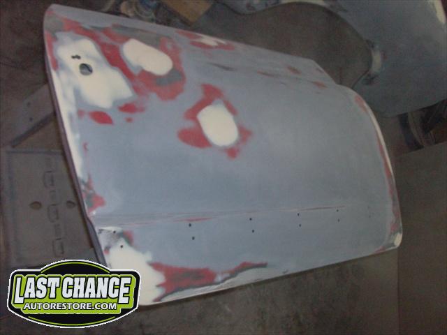 Our next step was the smoothing, priming and block sanding of the body, doors, hood and engine lid. After numerous hours of sanding, the shell was painted!