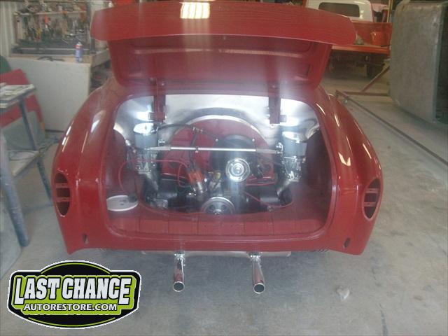 The original Cherry Red Volkswagen paint looked more like a red primer (which we do not care for). We painted this Ghia an authentic VW colour, "Ruby Red" (code #L456) which looks great!