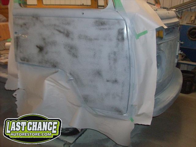 Now that the fabrication is complete, we turned our attention to the body smoothing. Lots and lots of block sanding and use of special high build primers. We made certain to recreate the correct factory seams and creases. This step was very important and time consuming, but the finished product will be worth it!